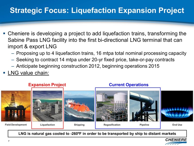 Cheniere is developing a project to add liquefaction trains, transforming the Sabine Pass LNG facility into the first bi-directional LNG terminal that can import & export LNG