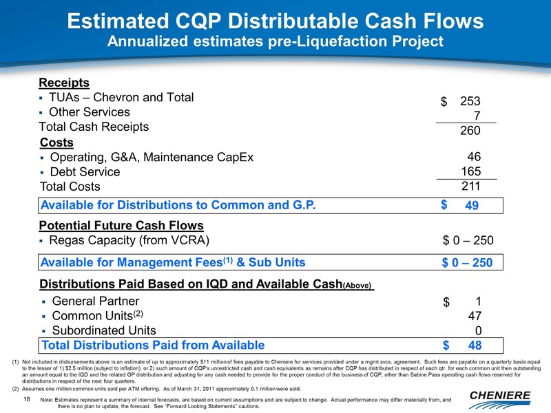 *Cheniere Energy Investments’ TUA is assignable to affiliates