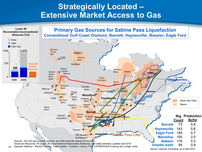 Sources: EIA (US map graphic, pipelines and LNG terminals placed by Cheniere)