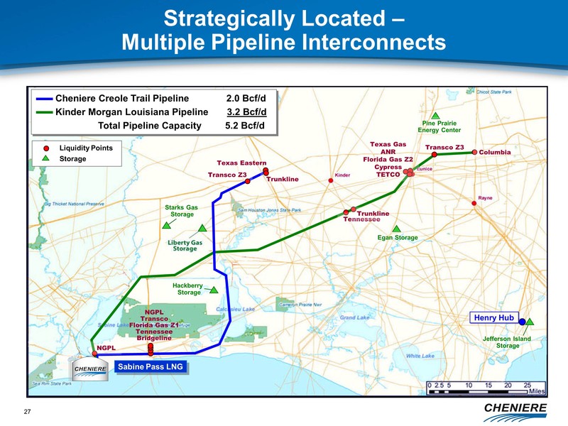 Sabine Pass LNG is connected to the U.S. natural gas pipeline grid through the Creole Trail pipeline and other interconnecting pipelines