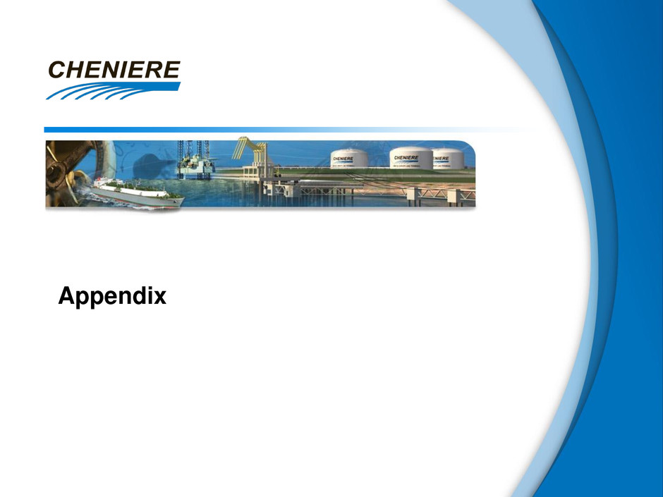 2  : :This presentation contains certain statements that are, or may be deemed to be, “forward-looking statements within the meaning of Section 27A of the Securities Act of  : :1933, as amended, and Section 21E of the Securities Exchange Act of 1934, as amended”. All statements, other than statements of historical facts, included herein  : :are “forward-looking statements.” Included among “forward-looking statements” are, among other things:  : : statements relating to the construction or operation of each of our proposed liquefied natural gas, or LNG, terminals or our proposed pipelines or liquefaction facilities,  : :or expansions or extensions thereof, including statements concerning the completion or expansion thereof by certain dates or at all, the costs related thereto and  : :certain characteristics, including amounts of regasification, transportation, liquefaction and storage capacity, the number of storage tanks, LNG trains, docks, pipeline  : :deliverability and the number of pipeline interconnections, if any;  : : statements that we expect to receive an order from the Federal Energy Regulatory Commission, or FERC, authorizing us to construct and operate proposed LNG  : :receiving terminals, liquefaction facilities or proposed pipelines by certain dates, or at all;  : : statements regarding future levels of domestic natural gas production, supply or consumption; future levels of LNG imports into North America; sales of natural gas in  : :North America or other markets; exports of LNG from North America; and the transportation, other infrastructure or prices related to natural gas, LNG or other energy  : :sources or hydrocarbon products;  : : statements regarding any financing or refinancing transactions or arrangements, or ability to enter into such transactions or arrangements, whether on the part of  : :Cheniere Energy, Inc., or Cheniere, or any subsidiary or at the project level;  : : statements regarding any commercial arrangements presently contracted, optioned or marketed, or potential arrangements, to be performed substantially in the  : :future, including any cash distributions and revenues anticipated to be received and the anticipated timing thereof, and statements regarding the amounts of total LNG  : :regasification, liquefaction or storage capacity that are, or may become, subject to such commercial arrangements;  : : statements regarding counterparties to our commercial contracts, construction contracts and other contracts;  : : statements regarding any business strategy, any business plans or any other plans, forecasts, projections or objectives, including potential revenues and capital  : :expenditures, any or all of which are subject to change;  : : statements regarding legislative, governmental, regulatory, administrative or other public body actions, requirements, permits, investigations, proceedings or  : :decisions;  : : statements regarding our anticipated LNG and natural gas marketing activities; and  : : any other statements that relate to non-historical or future information.  : :  : :These forward-looking statements are often identified by the use of terms and phrases such as “achieve,” “anticipate,” “believe,” “contemplate,” “develop,” “estimate,”  : :“example,” “expect,” “forecast,” “opportunities,” “plan,” “potential,” “project,” “propose,” “subject to,” and similar terms and phrases. Although we believe that the  : :expectations reflected in these forward-looking statements are reasonable, they do involve assumptions, risks and uncertainties, and these expectations may prove to  : :be incorrect. You should not place undue reliance on these forward-looking statements, which speak only as of the date of this presentation. Our actual results could  : :differ materially from those anticipated in these forward-looking statements as a result of a variety of factors, including those discussed in “Risk Factors” in the  : :Cheniere Energy, Inc. Annual Report on Form 10-K filed with the Securities and Exchange Commission on March 5, 2011, which are incorporated by reference into  : :this presentation. All forward-looking statements attributable to us or persons acting on our behalf are expressly qualified in their entirety by these ”Risk Factors”.  : :These forward-looking statements are made as of the date of this presentation, and we undertake no obligation to publicly update or revise any forward-looking  : :statements.  : :Forward Looking Statements  : :1  : : : :