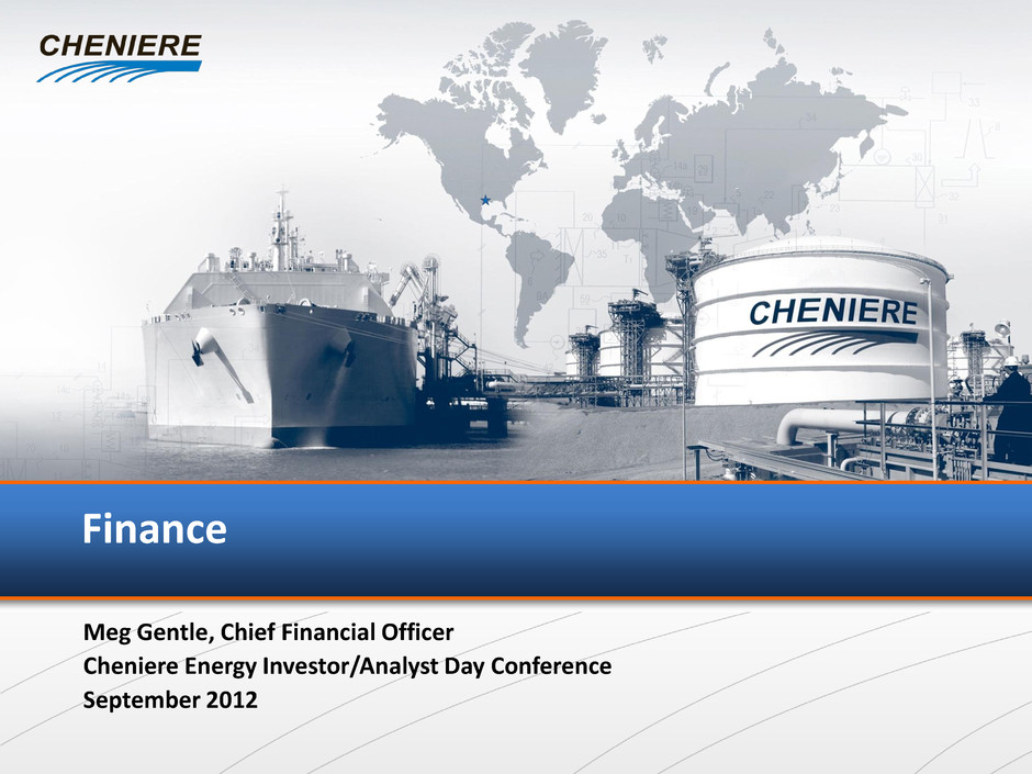 Finance Meg Gentle, Chief Financial Officer Cheniere Energy Investor/Analyst Day Conference September 2012