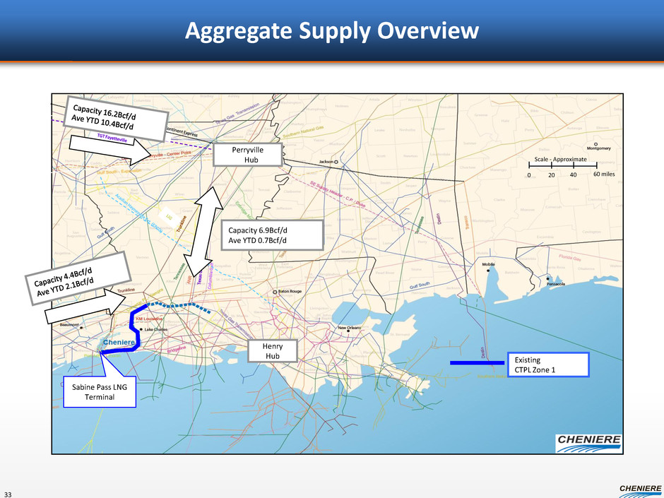 Aggregate Supply Overview Sabine Pass LNG Terminal Scale - Approximate 0 40 60 miles 20 Existing CTPL Zone 1 Henry Hub Perryville Hub Capacity 6.9Bcf/d Ave YTD 0.7Bcf/d 33