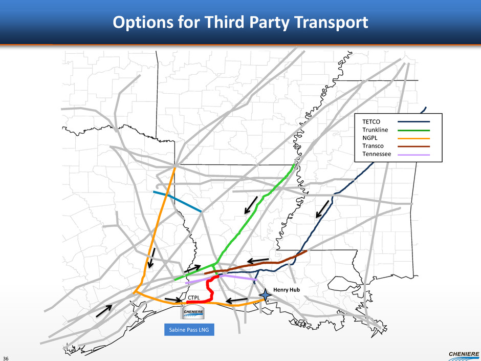 Options for Third Party Transport Texas Oklahoma Louisiana Mississippi Arkansas Tennessee Sabine Pass LNG CTPL Henry Hub TETCO Trunkline NGPL Transco Tennessee 36