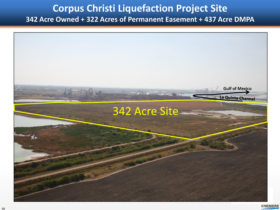 Corpus Christi Liquefaction Project Site 342 Acre Owned + 322 Acres of Permanent Easement + 437 Acre DMPA 342 Acre Site Gulf of Mexico 46