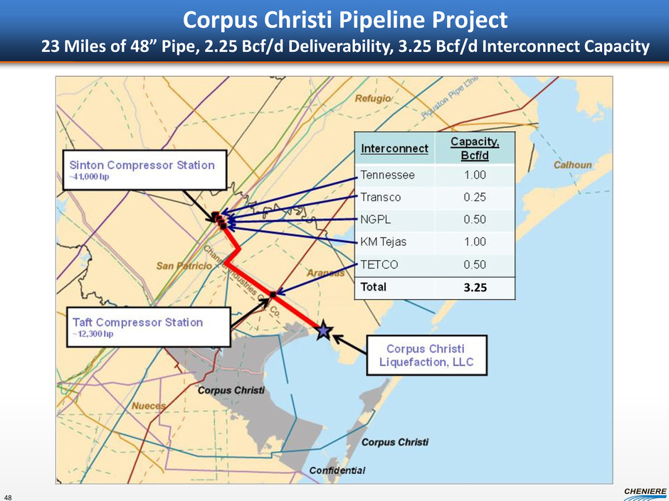 Corpus Christi Pipeline Project 23 Miles of 48” Pipe, 2.25 Bcf/d Deliverability, 3.25 Bcf/d Interconnect Capacity 48 3.25