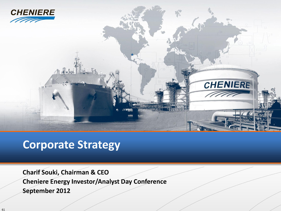 Corporate Strategy Charif Souki, Chairman & CEO Cheniere Energy Investor/Analyst Day Conference September 2012 61