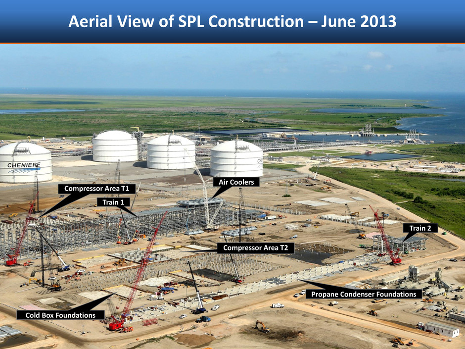 Aerial View of SPL Construction – June 2013 8 Train 1 Train 2 Compressor Area T1 Air Coolers Cold Box Foundations Compressor Area T2 Propane Condenser Foundations