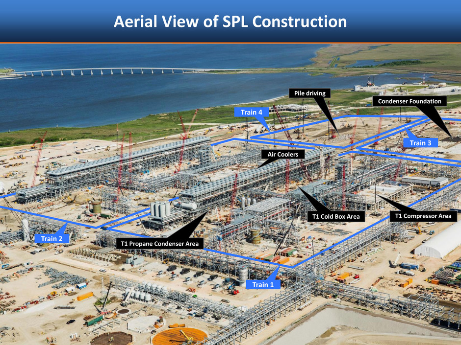 Aerial View of SPL Construction Train 2 Train 1 Train 3 Train 4 Air Coolers Pile driving Condenser Foundation T1 Compressor Area T1 Propane Condenser Area T1 Cold Box Area