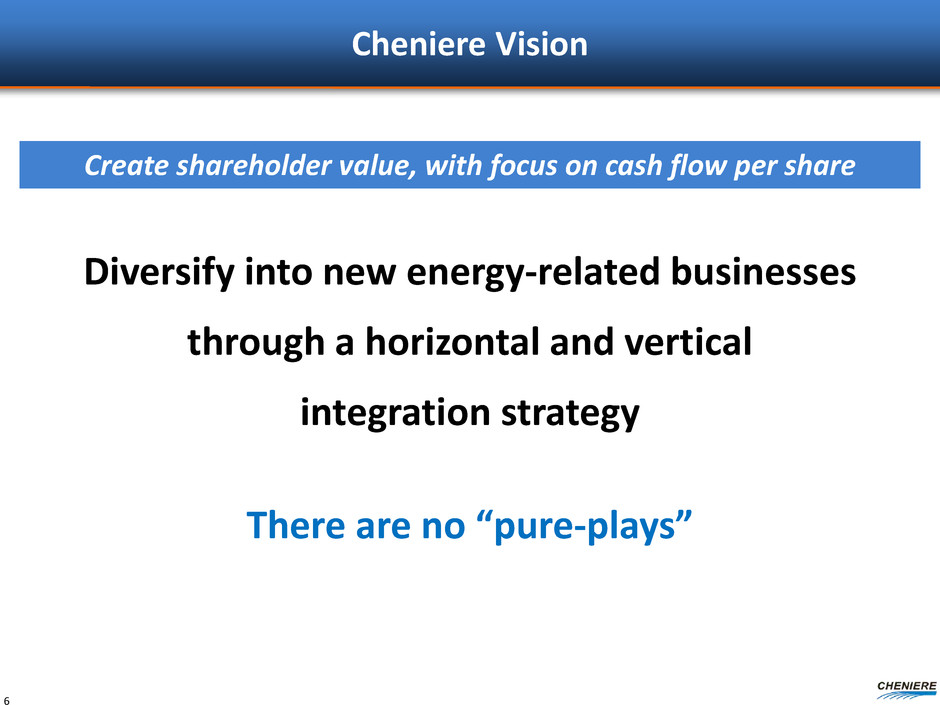 Cheniere Vision Diversify into new energy-related businesses through a horizontal and vertical integration strategy 6 There are no “pure-plays” Create shareholder value, with focus on cash flow per share