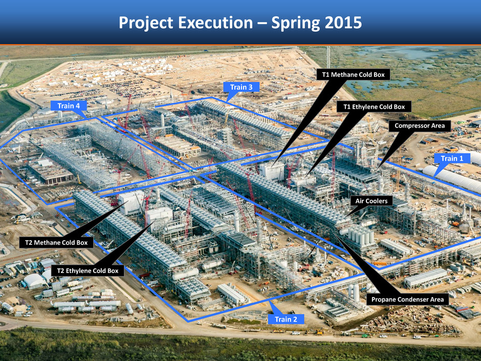 Project Execution – Spring 2015 Train 1 Train 2 Train 3 Train 4 Air Coolers Compressor Area Propane Condenser Area T1 Ethylene Cold Box T1 Methane Cold Box T2 Ethylene Cold Box T2 Methane Cold Box