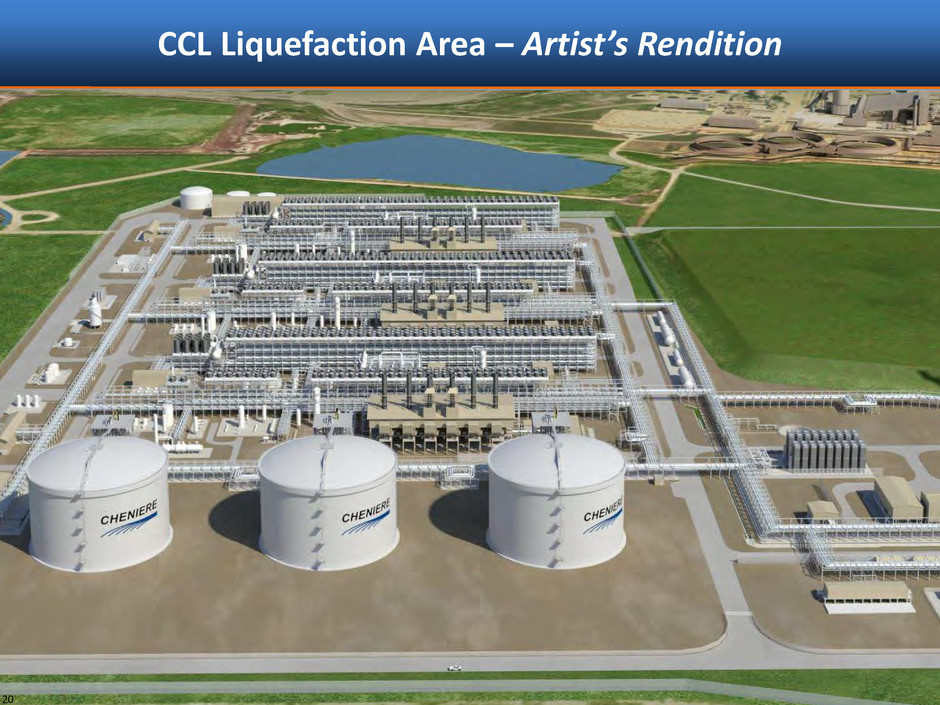 Additional 2-Train Expansion 19 Additional 2-Train Expansion Estimates Target FID date H2 2017 Capex estimate(1) ~$10 billion Project equity (Cash flow or public capital market financings ) ~$2.5 billion Project debt ~$7.5 billion Target COD 2021/2022 Target commercial assumptions 20-year “take-or-pay” style SPAs 7.0 MTPA(2) at $3.50 per MMBtu CMI portfolio volumes 2.0 MTPA(2) at projected gross margin of $4.00- $7.00/MMBtu Artist’s rendition Equity Additional 2-train expansion LNG customers Project Lenders ~$7.5 billion ~$2.5 billion • Operating cash flow and/or public capital market financings 20-year SPA capacity sales • ~$1.3 billion in annual revenues CMI sales • ~$0.4 to ~$0.7 billion in annual revenues(2) Note: Final investment decision dependent on completion of various regulatory, financing and commercial milestones. (1) Includes EPC and owner’s costs, interest during construction and other financing costs. (2) Assumes 7.0 MTPA sold under 20-year “take-or-pay” style SPAs. Assumes CMI sales of 2.0 MTPA of capacity (100% of remaining 2.0 MTPA).