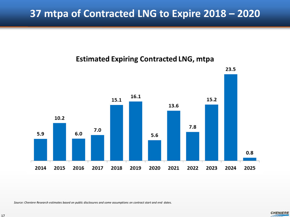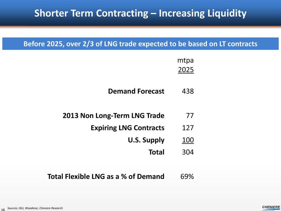 37 mtpa of Contracted LNG to Expire 2018 – 2020 17 Source: Cheniere Research estimates based on public disclosures and some assumptions on contract start and end dates.