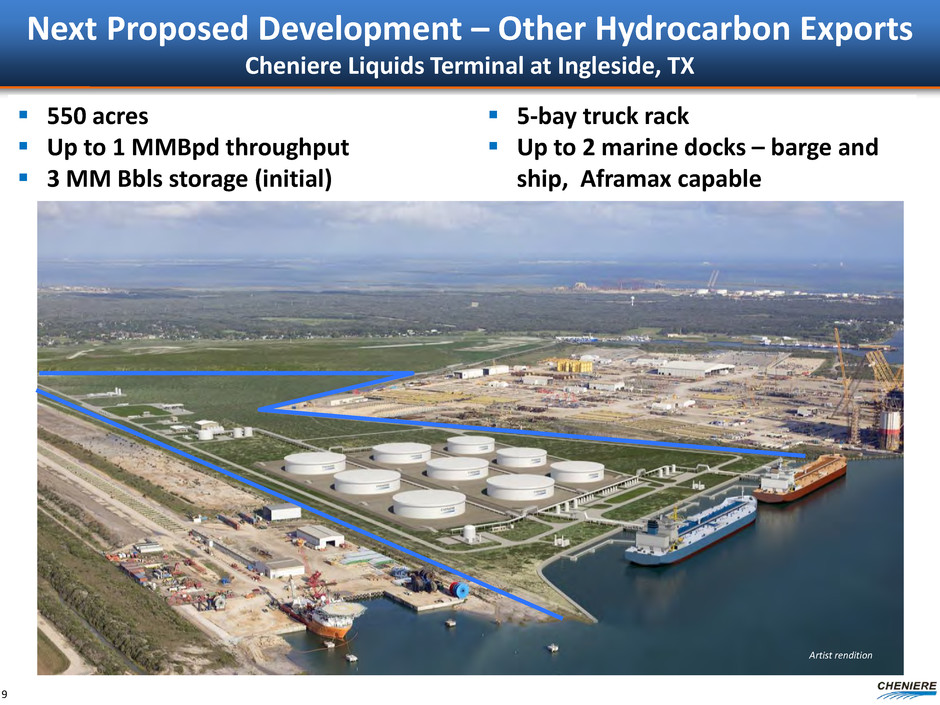 Next Proposed Development – Other Hydrocarbon Exports Developing Project in Texas along Gulf Coast 8 Corpus Christi LNG Facility Cheniere Liquids Terminal San Patricio Hub