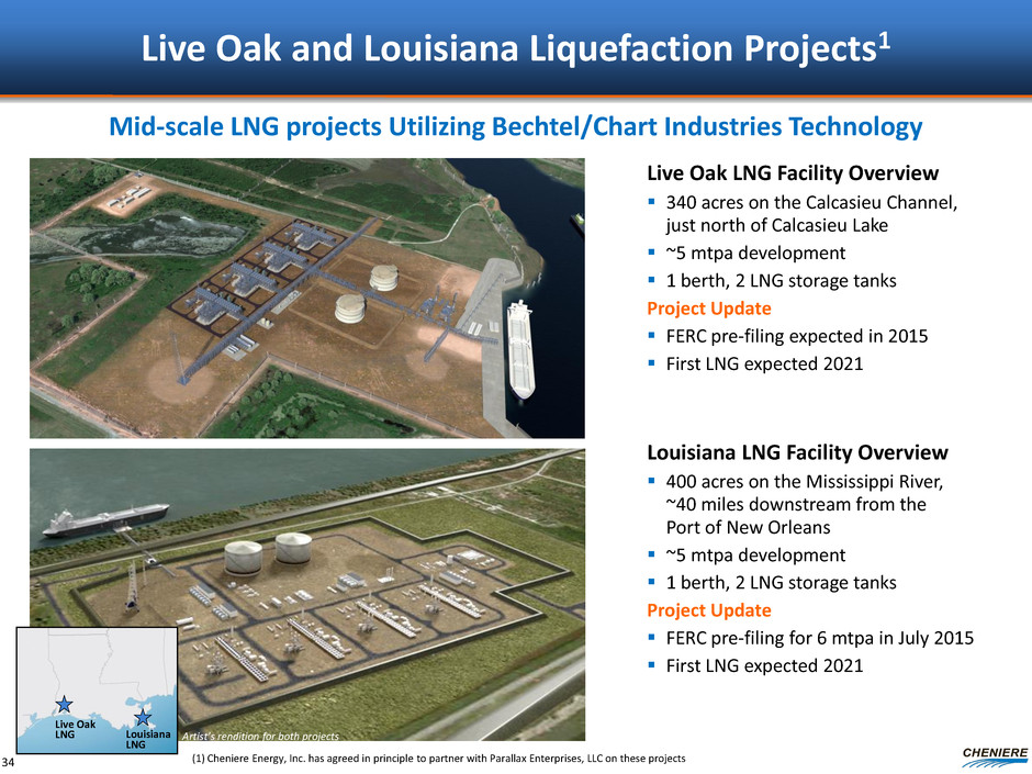 Timeline & Milestones Target Date SPL Corpus Christi Milestone T1-4 T5-6 T1-3 T4-5 Initiate permitting process (FERC & DOE) Commercial agreements T5 T6: 2015/16 T1-T2 T3: 2015/16 2016/2017 EPC contract T5 T6: 2015/16 2016/2017 Financing commitments T5 T6: 2015/16 2016/2017 Regulatory approvals 2017 Issue Notice to Proceed T5 T6: 2015/16 T1-T2 T3: 2015/16 2017 Commence operations (1) 2015-17 2018/19 2018/19 2021/22 (1) Each Train of the SPL project is expected to commence operations approximately six to nine months after the previous train. Note: See “Forward Looking Statements” slide. 33