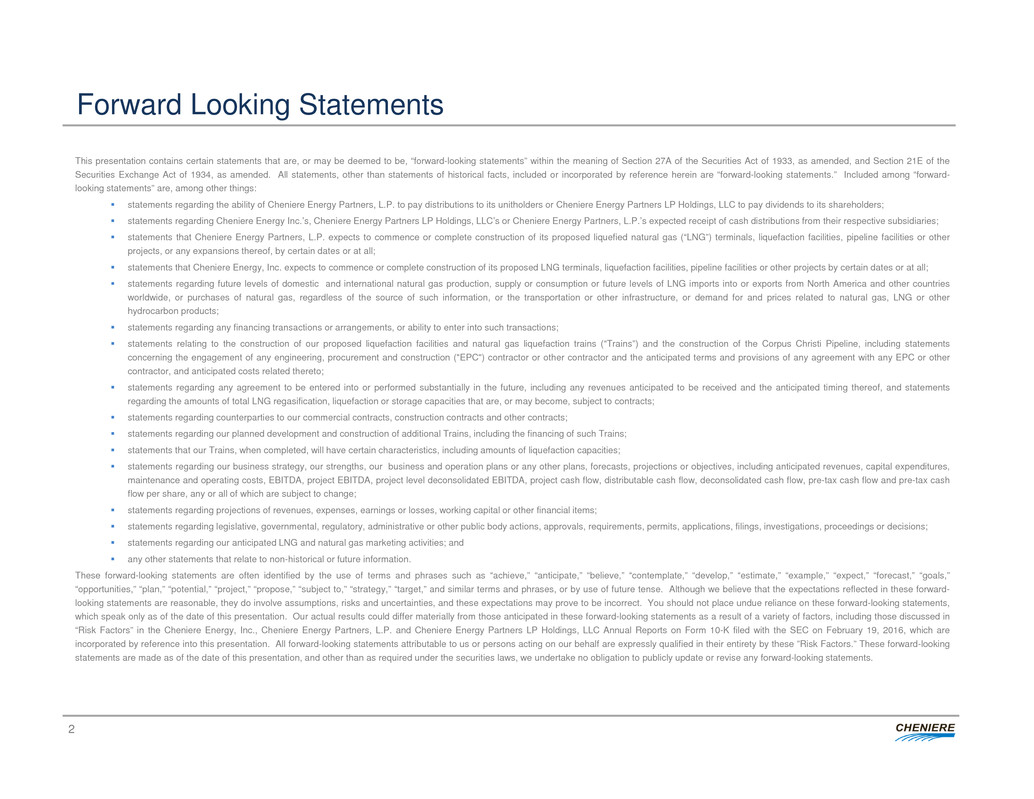 CHENIERE ENERGY, INC. February 20162016 CREDIT SUISSE ENERGY SUMMIT