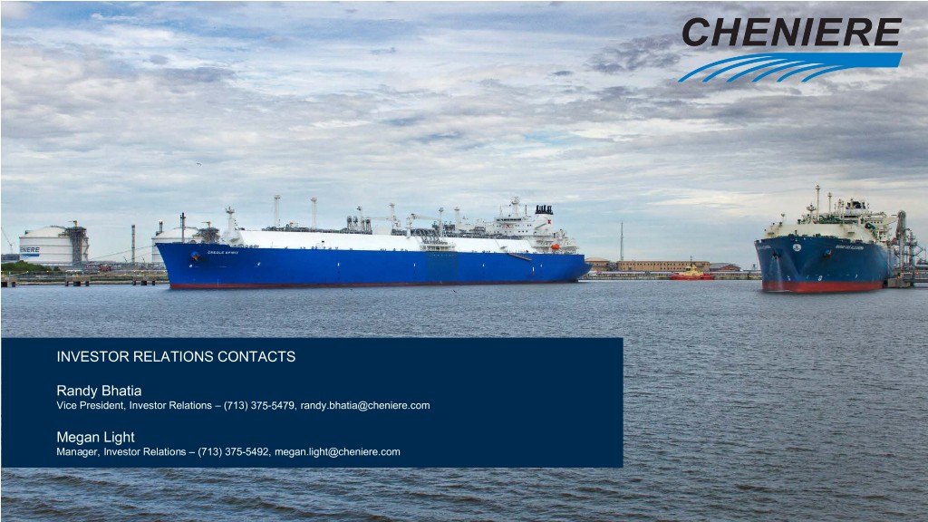 CHENIERE ENERGY, INC. INVESTOR RELATIONS CONTACTS Randy Bhatia Vice President, Investor Relations – (713) 375-5479, randy.bhatia@cheniere.com Megan Light Manager, Investor Relations – (713) 375-5492, megan.light@cheniere.com