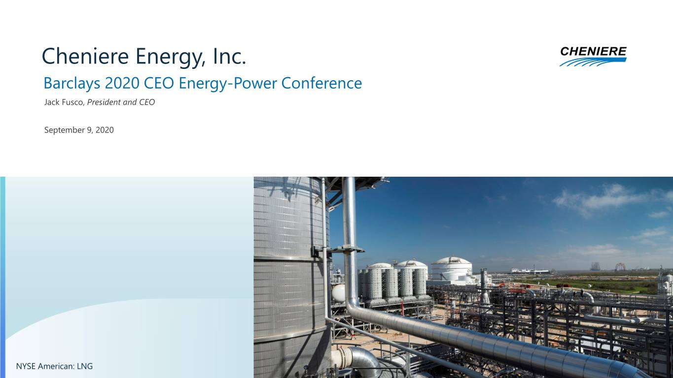 Cheniere Energy, Inc. Barclays 2020 CEO Energy-Power Conference Jack Fusco, President and CEO September 9, 2020 NYSE American: LNG