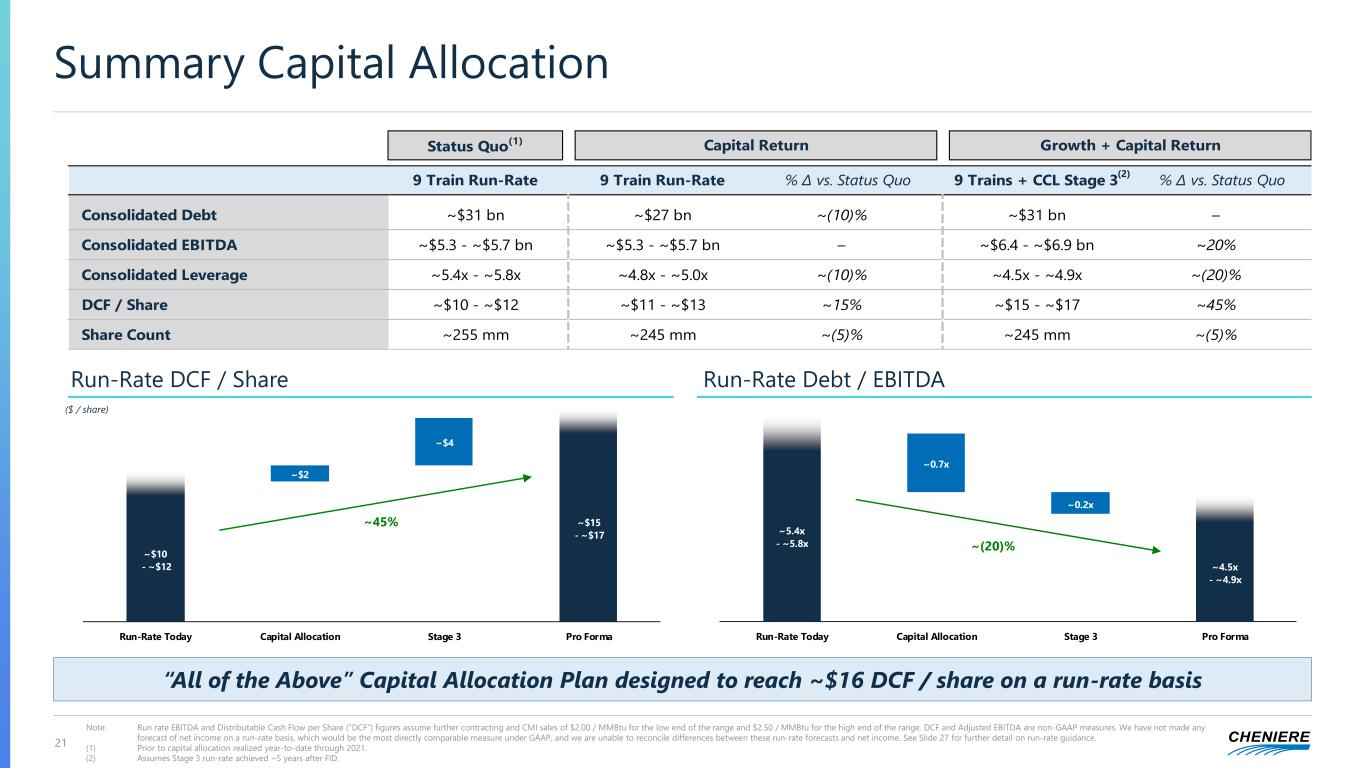 Cheniere Energy, Inc. Capital Allocation Update September 2021 NYSE American: LNG